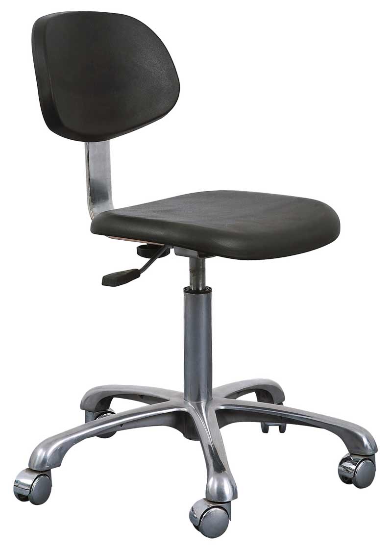防靜電聚氨酯工作椅的坐墊和靠背是由防靜電聚氨酯材料整體注塑一體成型的;高強度一體化支撐,椅墊和椅背間采用加強型鋼板連接,坐墊高度由進口可調(diào)節(jié)氣泵